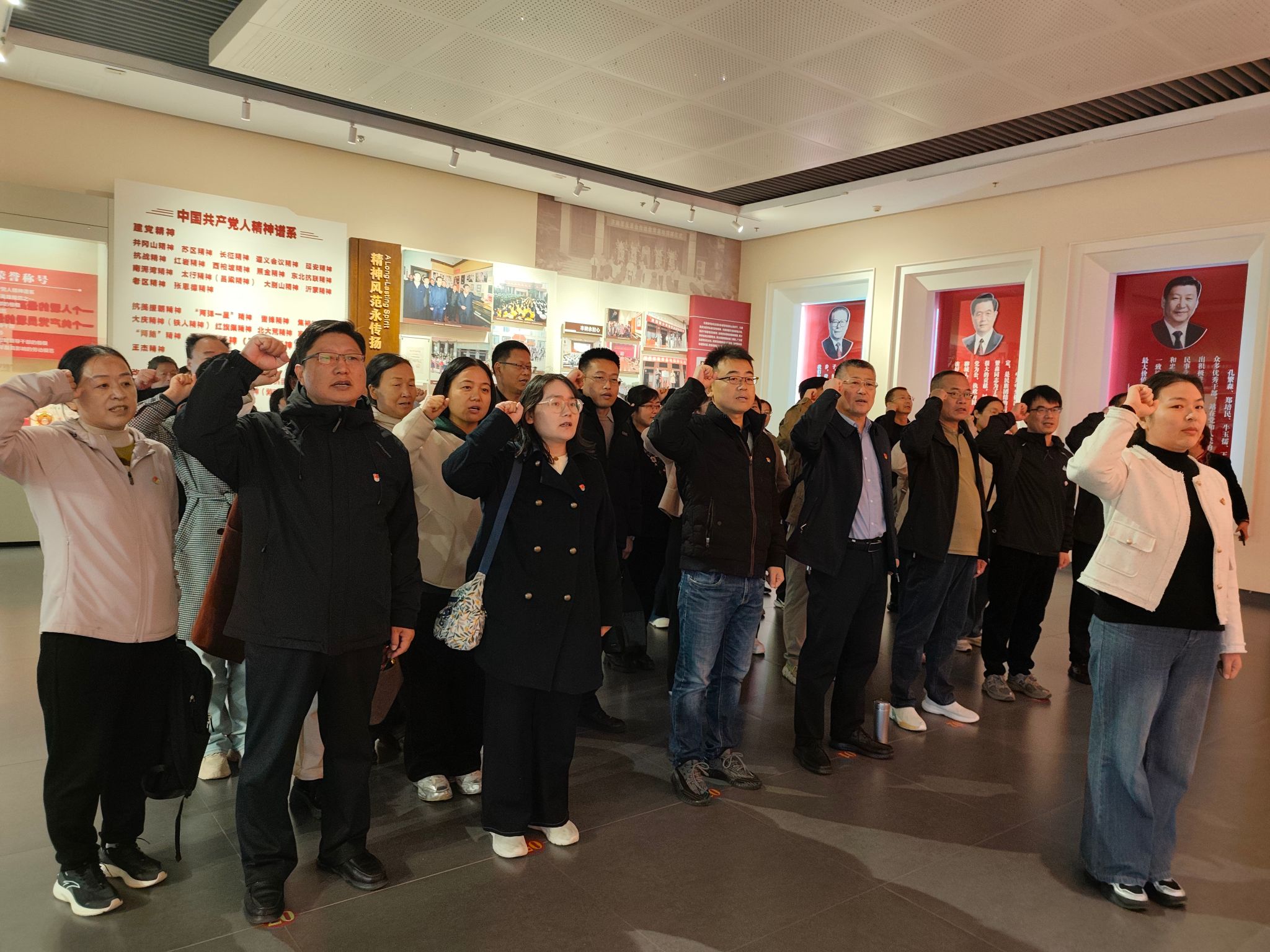 在孔繁森同志塑像前,大家怀着崇敬的心情向孔繁森同志塑像鞠躬致意。在讲解员引导下,党员们依次参观“齐鲁赤子”、“情系高原”等主题展区,通过36本工作日记、听诊器等珍贵文物,重温孔繁森同志扎根雪域高原、无私奉献的感人事迹,深切感悟到“忠诚坚定、无私奉献”的精神品格、“一腔热血洒高原”的为民情怀、“清正廉洁、克己奉公”的高尚品德、“艰苦奋斗、知难而进”的拼搏精神、“开拓进取、求真务实”的优良作风。参观结束后,全体党员在鲜红的党旗下庄严宣誓,重温入党誓词。