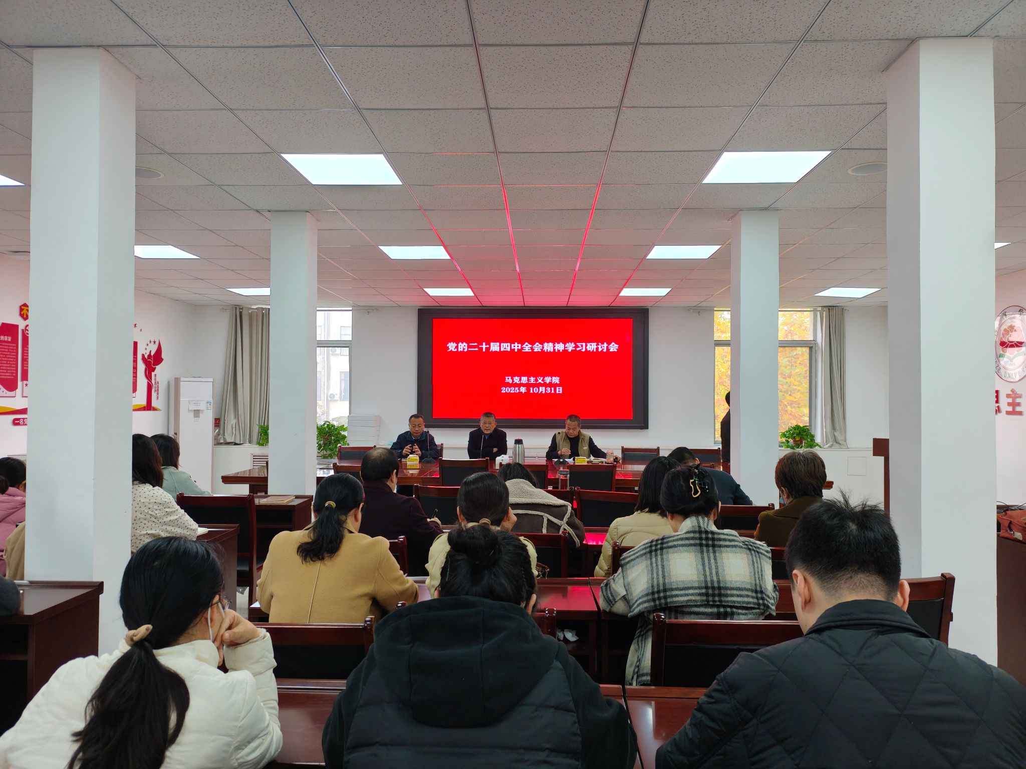 深入学习贯彻党的二十届四中全会精神10月31日,马克思主义学院院长王庆高为全体教师作题为《深学笃行党的二十届四中全会精神 勇担“十五五” 现代化新使命》的专题报告。报告会由马克思主义学院党委书记陈支庆主持。