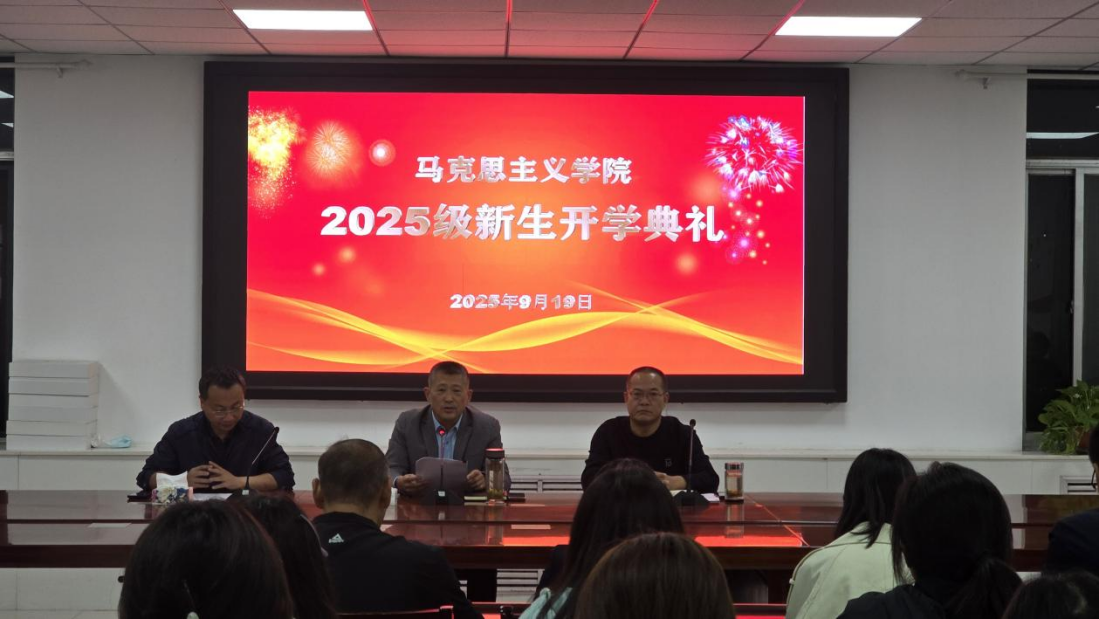 金秋送爽,丹桂飘香。2025年9月19日,马克思主义学院一号办公楼301会议室召开2025级新生开学典礼学院党委书记陈支庆,学院党委副书记、院长王庆高,党委副书记、副院长张志伟及各科室、各教研部负责人,全体辅导员、班主任和专业教师代表出席典礼,典礼由学院党委副书记、副院长张志伟主持。