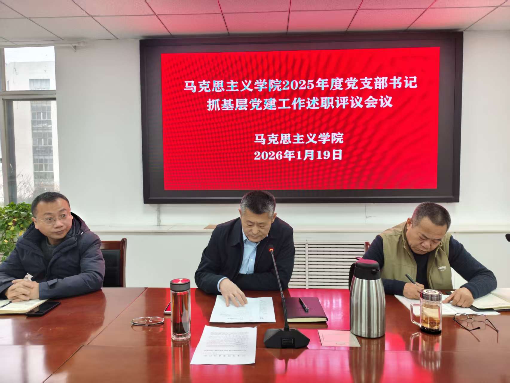 2026年1月19日,马克思主义学院召开学院党委(扩大)会议暨2025年度党支部书记抓基层党建工作和履行全面从严治党述责述廉评议会议。学院党委委员、各党支部书记、教研部系主任和科级干部参加会议,支部党员列席会议。会议由学院党委书记陈支庆主持。
