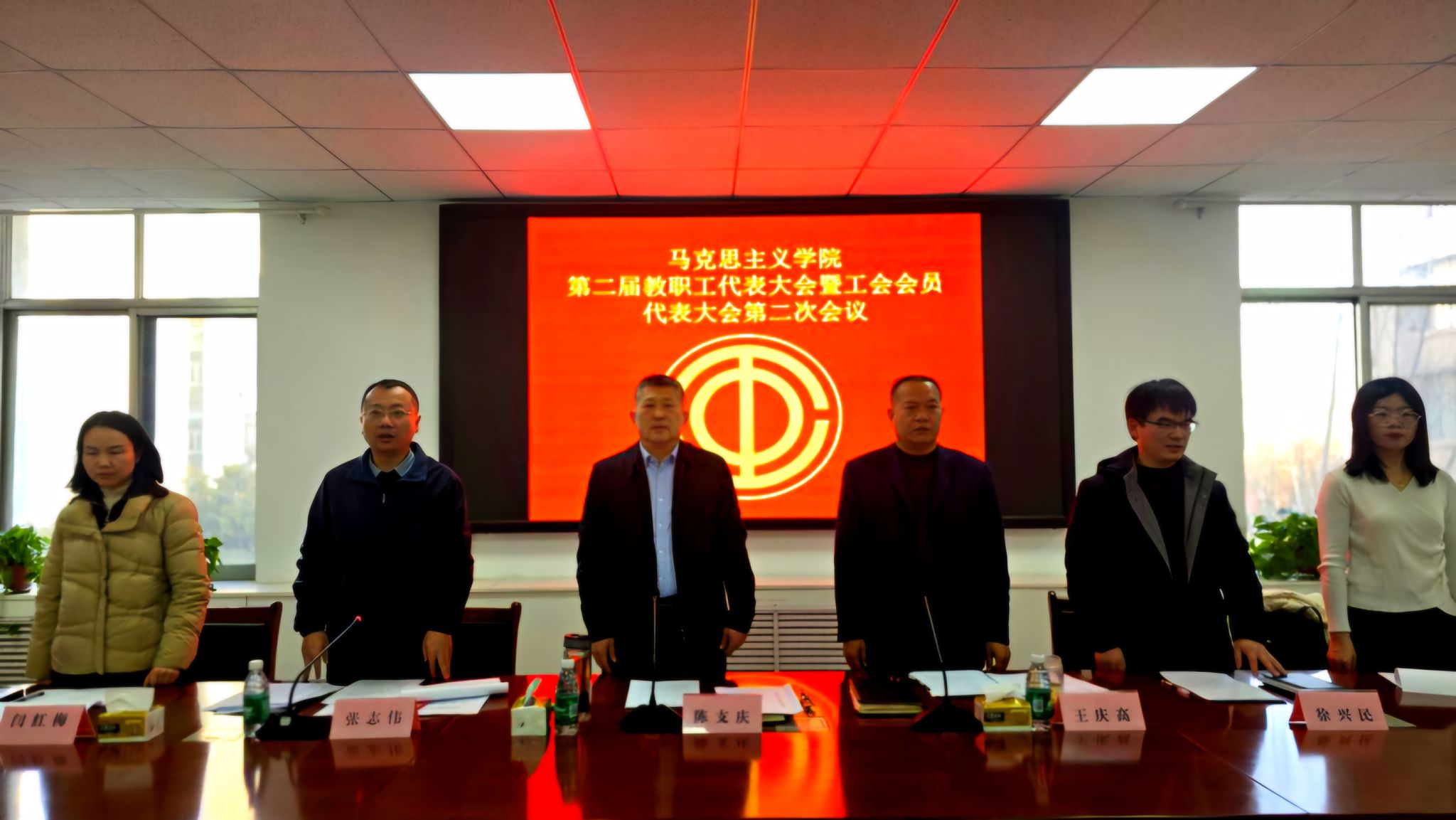 12月26日上午,马克思主义学院在1号教学楼301会议室召开第二届教职工代表大会暨工会会员代表大会第二次会议。院领导班子成员及教职工代表参加大会。会议由院党委书记陈支庆主持。