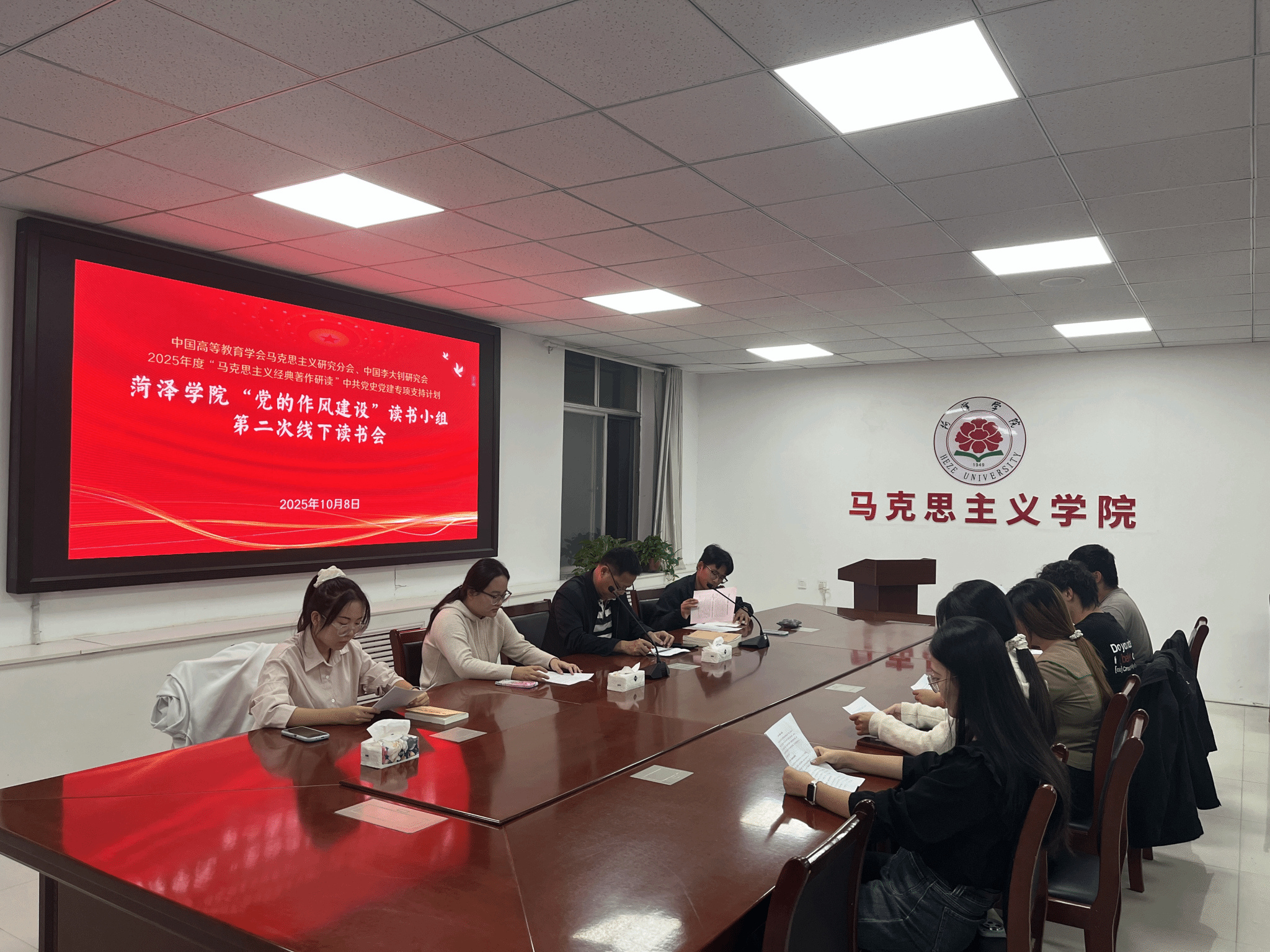 2025年10月8日,中国高等教育学会马克思主义研究分会、中国李大钊研究会2025年度“马克思主义经典著作研读”中共党史党建专项支持计划——“党的作风建设”读书小组第二次读书活动在马克思主义学院1号教学楼301会议室举行。本期读书会由马克思主义学院思想政治教育专业教师王禹军教授指导,2023级思政班冯泽坤同学主持,思想政治教育专业9名同学参加。