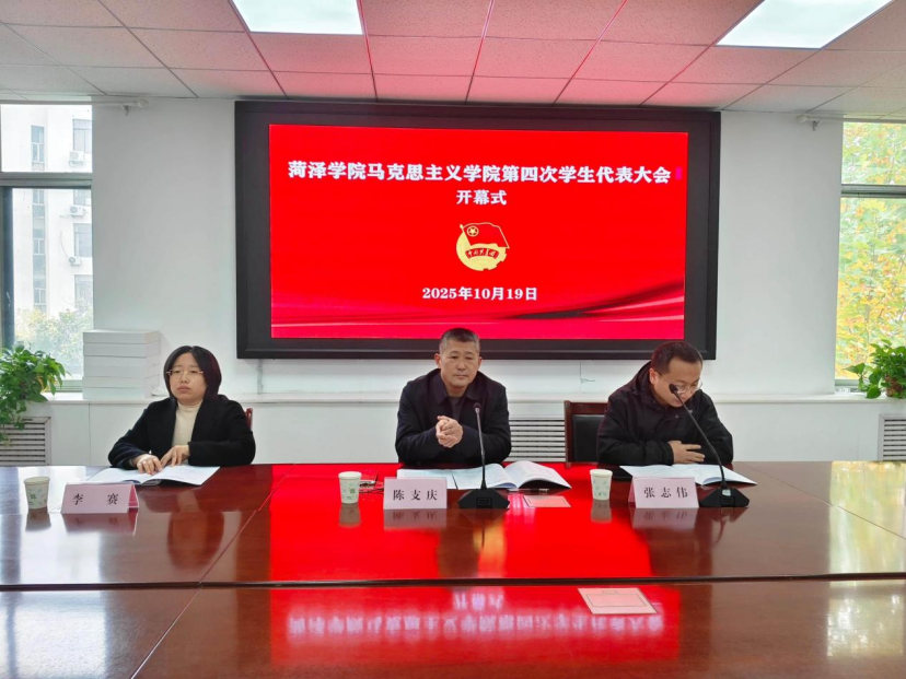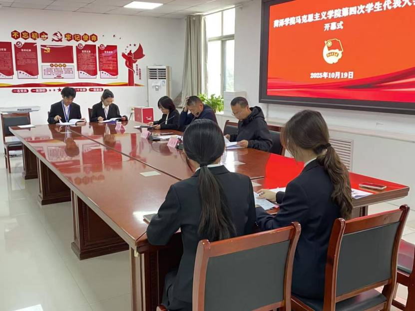 2025年10月19日,马克思主义学院第四次学生代表大会在一号楼301会议室隆重举行。学院党委书记陈支庆、党委副书记兼副院长张志伟、学生工作办公室主任李赛出席会议,学院新一届学生会主席林烨宏主持会议。