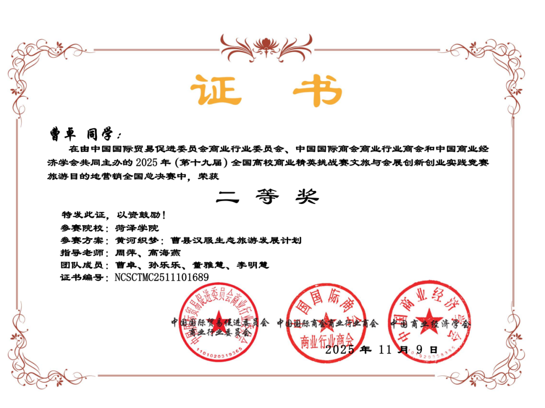 近日,菏泽学院马克思主义学院学子在学科竞赛领域捷报频传,两个团队在第十九届全国高校商业精英挑战赛中分别荣获二等奖和三等奖。