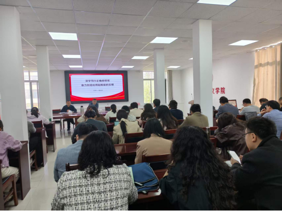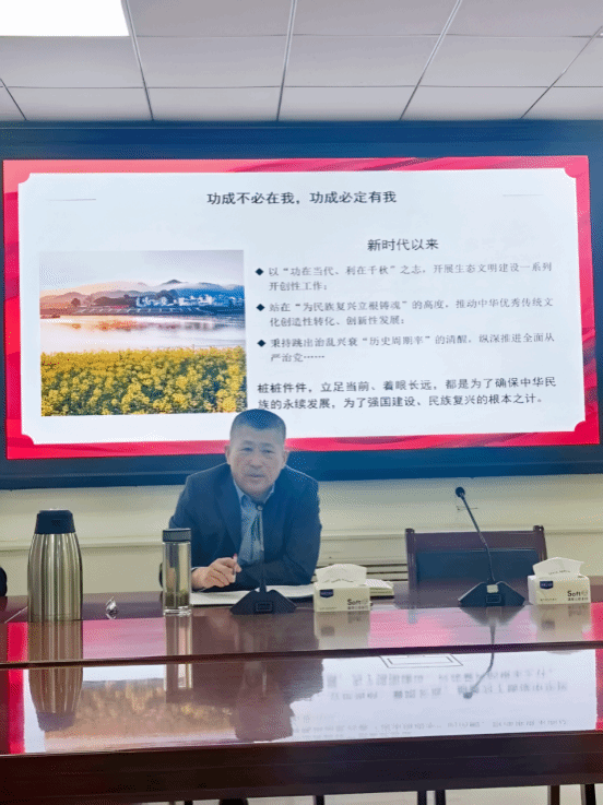 为深入推进树立和践行正确政绩观学习教育,引导全体教师党员坚守立德树人初心、锚定实干担当方向、提升教书育人与履职尽责能力,43上午马克思主义学院党委书记陈支庆“深学笃行正确政绩观 奋力创造经得起检验的实绩为题为全体教师党员讲授专题党课。