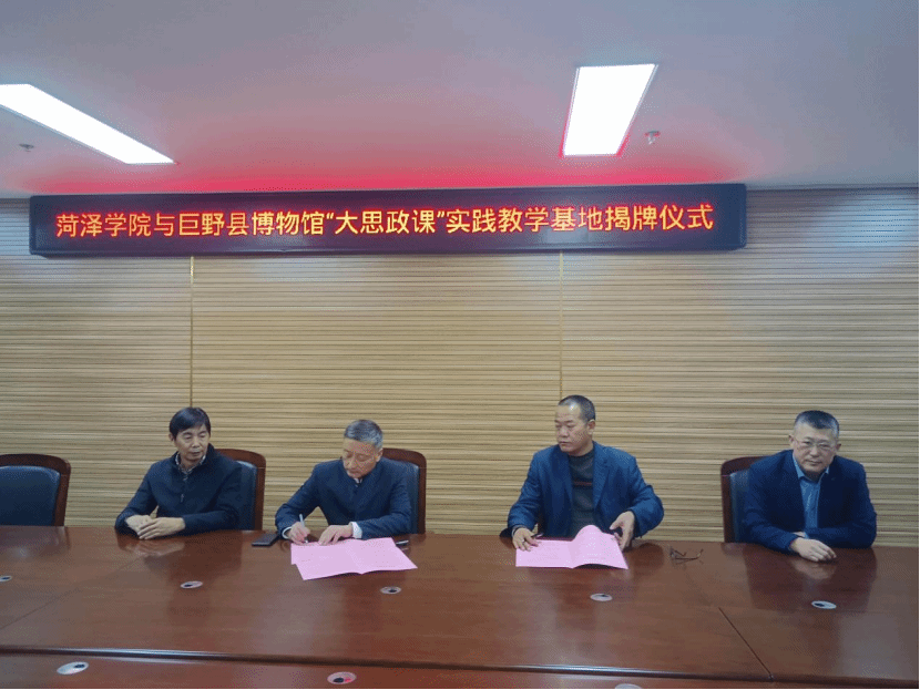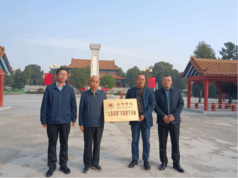 2025年10月24日、28日,马克思主义学院党委书记陈支庆、院长王庆高率队赴菏泽鲁西南烈士陵园、鲁西新区红色基因传承馆、菏泽市文化馆、巨野县博物馆、成武县博物馆、冀鲁豫边区革命纪念馆、菏泽市烈士陵园(菏泽市抗日纪念馆)、菏泽黄河河务局等单位开展“大思政课”实践教学基地揭牌、挂牌及签约活动。
